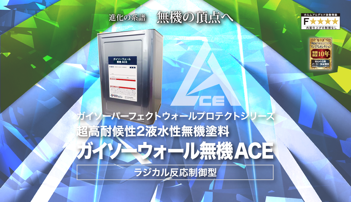 「ガイソーウォール無機ACE」は優れた耐候性とひび割れに強い柔軟性を兼ね備えた塗料です。
